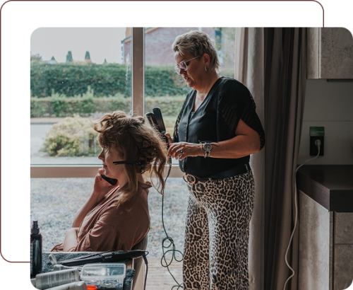 Super blij met mijn mooie bruidskapsel. De krullen bleven de hele dag perfect zitten. Bedankt voor alles.